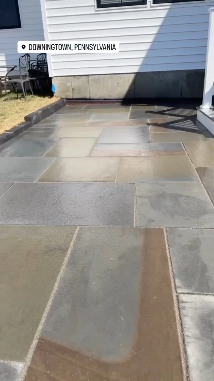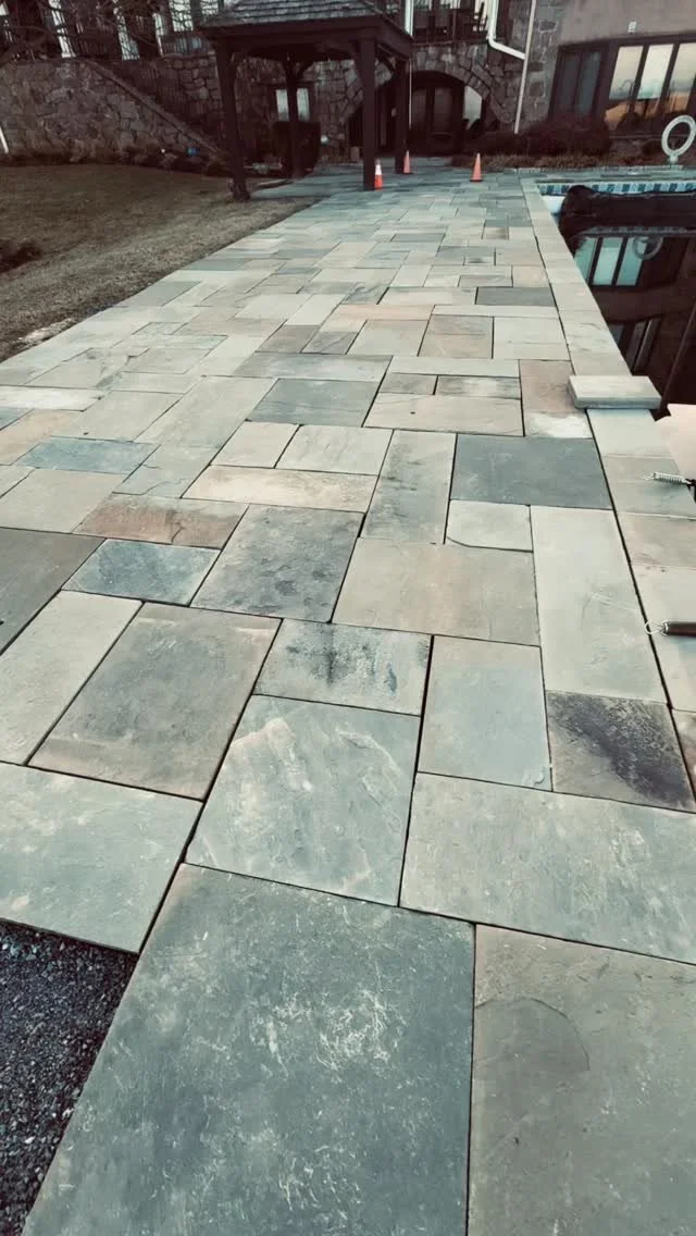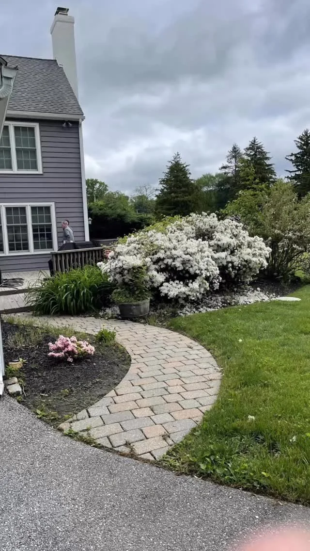 Premium paved stone path and landscape architecture project completed for a homeowner in the Main Line area.